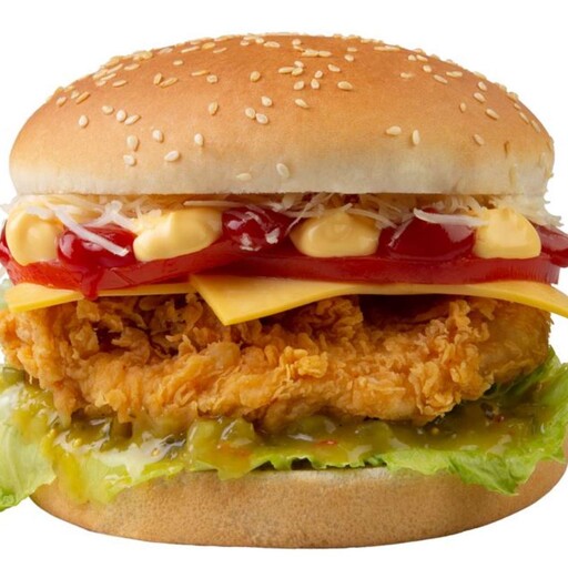 Два сочных филе в оригинальной или острой панировке, листья салата, домашний майонез на Тройной булочке с кунжутом.
